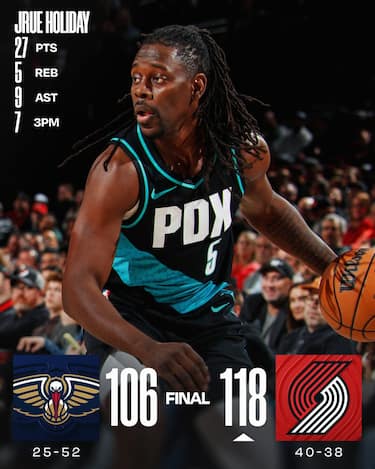 Contro i Pelicans, ai Blazers basta cambiare marcia nel 3° quarto, in cui concedono agli avversari solo 16 punti, per ottenere l’8^ vittoria nelle loro ultime 10 partite. Jrue Holiday (27 punti e 9 assist) e Deni Avdija (26 punti e 8 rimbalzi) guidano Portland, mentre per New Orleans ci sono i 21 punti in uscita dalla panchina segnati dal rookie Jeremiah Fears, forse unica nota positiva di un’altra stagione disgraziata
