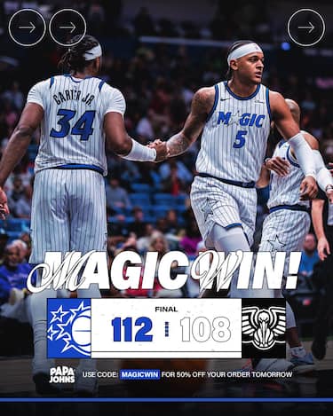 Sono Desmond Bane (27 punti) e Paolo Banchero (23 punti e 16 rimbalzi) i protagonisti della vittoria in rimonta di Orlando, che a Memphis recupera dal -15 accumulato ancora nel 3° quarto e vince in volata. Ai Pelicans, invece, non bastano i 32 punti di uno scatenato Saddiq Bey