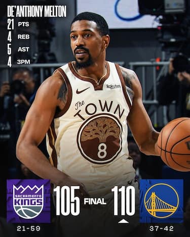 Golden State torna a vincere dopo quattro sconfitte in fila trovando le giocate giuste nel finale per infliggere ai Kings il sesto ko nelle ultime otto. Steph Curry segna 17 punti uscendo dalla panchina realizzando due giochi da quattro punti a distanza di due minuti l’uno dall’altro. Gli ospiti non vanno oltre i 17 del rookie Maxime Raynaud nel giorno del suo 23° compleanno e i 18 di Killian Hayes dalla panchina