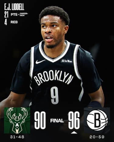 Seconda vittoria consecutiva per i Nets, che hanno 21 punti da EJ Liddell (massimo in carriera) e 19 di Ben Seraf per avere ragione di quello che resta dei Bucks. Mentre in conferenza stampa Doc Rivers fa intendere di non volere più allenare a lungo, la sua squadra non va oltre i 20 punti di AJ Green e i 16 di Taurean Prince, senza mai superare quota 30 in nessuno dei quattro quarti del match