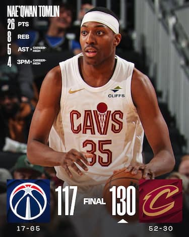 È Nae’Qwan Tomlin il protagonista dell’ultima di regular season dei Cavs in casa con 26 punti e 8 rimbalzi, migliore tra le seconde linee a cui Kenny Atkinson lascia ampio spazio. Washington chiude invece la sua tribolatissima stagione con la 65^ sconfitta nonostante i 20 punti e 9 assist di Bub Carrington