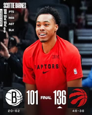 È la tripla doppia da 18 punti, 12 rimbalzi e 12 assist a trascinare Toronto alla netta vittoria su Brooklyn che vale il 5° posto a Est e l’incrocio con Cleveland al primo turno dei playoff. I Raptors hanno anche 26 punti da RJ Barrett e 25 da Brandon Ingram mentre per i Nets il migliore in campo è Tyson Etienne, che segna 20 punti in uscita dalla panchina