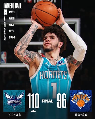 Agli Hornets serviva una vittoria per assicurarsi il 9° posto a Est e quindi il vantaggio del fattore campo nella prima sfida del play-in e LaMelo Ball, Brandon Miller e Coby White, autori di 19 punti a testa, guidano la squadra al netto successo al Madison Square Garden. I Knicks, invece, fanno riposare i titolari in vista dei playoff e si godono comunque un Miles McBride da 21 punti