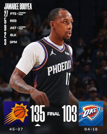 Già sicuri dei loro piazzamenti nella Western Conference, Thunder e Suns lasciano ampio spazio alle seconde linee nell’ultima gara di regular season. Ad avere la meglio sono gli ospiti, che trovano il career high di Jamaree Bouyea con 27 punti, mentre per Oklahoma City il migliore in campo è Branden Carlson, autore di una doppia doppia da 26 punti e 10 rimbalzi
