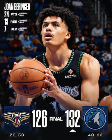 Minnesota, già sicura del 6° posto a Ovest, lascia spazio alle seconde linee, trova 24 punti e 13 rimbalzi dal rookie Joan Beringer, 26 punti da Terrence Shannon Jr. e batte New Orleans. Anche per i Pelicans i protagonisti dell’ultima di regular season sono i rookie, con la doppia doppia da 30 punti e 22 rimbalzi di Derik Queen e quella da 36 punti e 10 rimbalzi di Jeremiah Fears