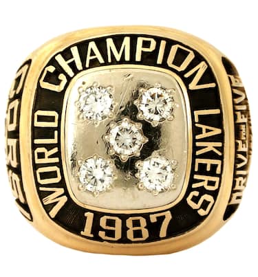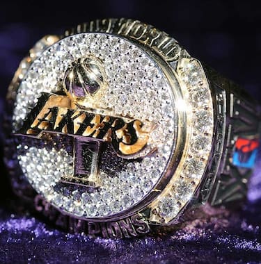 Lasciandosi alle spalle i titoli vinti ai tempi di Minneapolis, i Lakers festeggiano il quinto anello dal loro trasferimento a Los Angeles negli anni Sessanta, con cinque diamanti rotondi al centro dell'anello