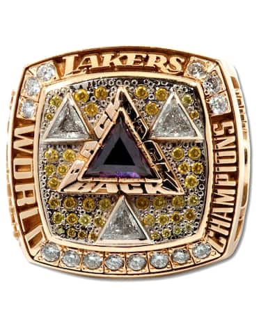 Il primo titolo "solista" di Kobe Bryant è racchiuso all'interno di 14 carati che rappresentano i titoli vinti in precesenza dalla franchigia, come da richiesta precisa di Dr. Jerry Buss.
