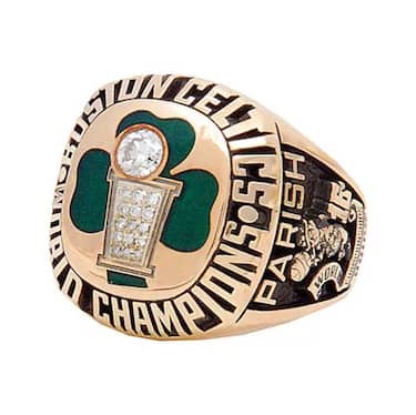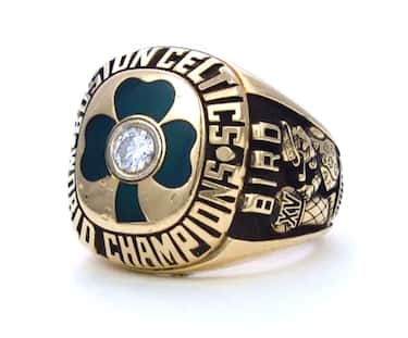 Il secondo anello nella carriera di Larry Bird, il primo da MVP delle Finals, ha un design classico, con un diamante al centro del logo invece del trofeo