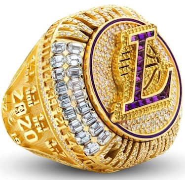 Un anello particolare, con la L del logo Lakers composta da 17 pietre - una per ogni titolo NBA vinto dalla squadra di Los Angeles - e con la parte superiore removibile, sotto la quale ci sono tutte le maglie ritirate, dando particolare risalto alla n°8 e alle n°24 di Kobe Bryant. Sono riportati il record raccolto in regular season, oltre che quello in ogni singola serie playoff giocata all'interno della bolla dai Lakers. Altro dettaglio per ricordare Kobe: un Black Mamba stilizzato che circonda ogni nome presente sull'anello.