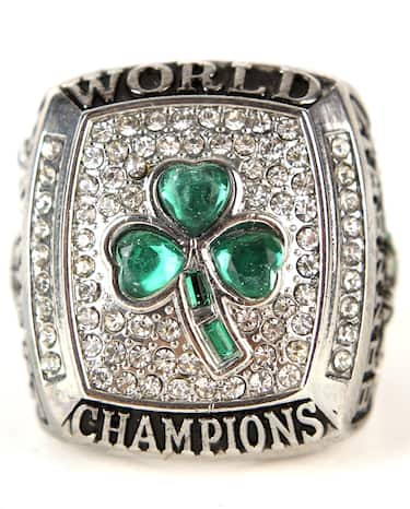 Design molto particolare, con un pallone non completo dietro il diamante al centro dell'anello, per il titolo arrivato superando i Lakers per 4-3 - l'ottavo consecutivo per i biancoverdi