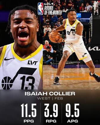 - Una delle poche note positive della stagione dei Jazz è Isaiah Collier, che ha giocato un grande mese di febbraio conquistando il premio di rookie dell'anno a Ovest