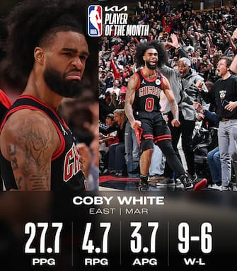 - Grazie alle 9 vittorie ottenute nelle 15 partite giocate a marzo i Bulls si sono assicurati un posto al play-in e Est, e a guidare la squadra è stato un Coby White da 27.7 punti di media a partita