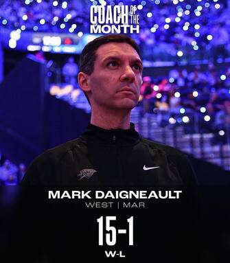 - 15 vittorie e solo una sconfitta, dopo aver vinto nel mese di febbraio Mark Daigneault non può che essere premiato nuovamente per il mese scintillante vissuto dai suoi Thunder