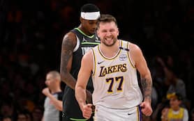 NBADopo i 37 punti realizzati in gara-1 contro Minnesota, Luka Doncic ha segnato altri 31 in gara-2 guidando i Lakers al successo. Nella storia della franchigia solamente George Mikan e Shaquille O'Neal sono riusciti a realizzare almeno 30 punti nelle prime due partite di playoff coi gialloviola, e Doncic non è nemmeno andato lontano dalla tripla doppia aggiungendo anche 12 rimbalzi e 9 assist alla sua partita. Pur litigando con il tiro dalla lunga distanza (2/8)., lo sloveno è stato perfetto dalla lunetta con 11/11 chiudendo con un plus-minus di +12 nei 42 minuti in cui rimane in campo, vincendo la sua prima partita di playoff in maglia Lakers e regalando la prima soddisfazione a JJ Redick