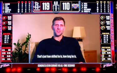 A Houston, evidentemente, erano preparati all'eventualità che durante la sfida casalinga contro i Pelicans Kevin Durant riuscisse a superare Dirk Nowitzki, diventando così il 6° marcatore di sempre in NBA. La stella dei Rockets ha quindi effettivamente portato a termine l'impresa nel finale della partita vinta, e subito dopo sugli schermi del Toyota Center è partito un video con protagonista proprio il tedesco, che oltre a fare i complimenti al collega l'ha definito 'uno degli attaccanti più dotati di sempre'