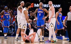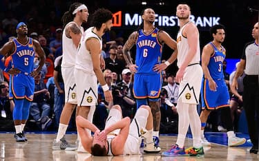 La terza sfida stagionale tra gli Oklahoma City Thunder e i Denver Nuggets non ha tradito le attese, specialmente grazie al duello tra Nikola Jokic e Shai Gilgeous-Alexander - anche per il premio di MVP. Nell'ultimo minuto di gioco i due candidati principali per il trofeo individuale più importante hanno dato il meglio di loro stessi, con Jokic autore di 8 punti (a cui si aggiunge il libero di Jamal Murray per la parità dopo un gioco da quattro punti cruciale) e SGA a rispondere con due triple, tra cui quella della vittoria a 2.7 secondi dalla fine. Rivivi tutto con il commento di Flavio Tranquillo e Matteo Soragna per Sky Sport