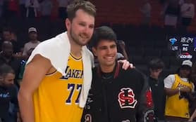 Il momento magico di Luka Doncic non accenna a fermarsi e con lui quello dei Los Angeles Lakers. Nonostante la fatica del back-to-back arrivando in piena notte da Houston, lo sloveno ha realizzato una prestazione magica sul campo dei Miami Heat, mettendo la firma su 60 punti con 7 rimbalzi, 3 assist e 5 palle recuperate. Eccellenti le percentuali: 18/30 dal campo di cui 9/17 da tre punti insieme a 15/19 ai liberi in meno di 38 minuti, trascinando i Lakers all’ottava vittoria consecutiva. Per lui sono 100 punti tondi in due gare consecutive dopo i 40 di ieri a Houston: nella striscia dei gialloviola il capocannoniere della lega ha sempre segnato almeno 30 punti e per la seconda volta nelle ultime cinque gare è andato a quota 50. Era dai tempi dell’ultima gara in carriera di Kobe Bryant nel 2016 che i Lakers non avevano un giocatore a quota 60, mentre per Doncic si tratta del terzo “sessantello” in carriera, realizzando anche il record per un avversario dei Miami Heat (superati i 58 di James Harden nel 2019)