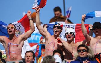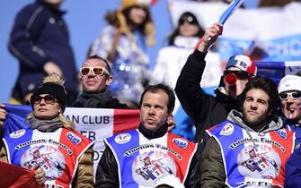 Questa mattina a vedere lo slalom c'erano anche questi accesissimi tifosi francesi, che hanno portato bene: i due transalpini Missiliers e Pinturault hanno vinto argento e bronzo -