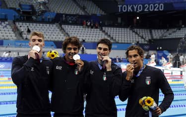 La staffetta 4x100 stile libero azzurra sale per la prima volta nella storia sul secondo gradino del podio di Tokyo 2020 grazie al quartetto composto da Alessandro Miressi, Thomas Ceccon, Lorenzo Zazzeri e Manuel Frigo. Al Tokyo Aquatics Centre gli azzurri cedono soltanto agli Stati Uniti, che vincono in 3:08.97, e si prendono una fantastica medaglia d’argento con il tempo di 3:10.11 (foto Ferraro - GMT Sport). Chiude il podio l’Australia, bronzo in 3:10.22. Si tratta dell seconda medaglia della storia dopo il bronzo della 4x200 stile libero di Massimiliano Rosolino, Filippo, Magnini, Simone Cercato ed Emiliano Brembilla ad Atene 2004.