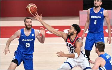 Partono concentrati difensivamente gli americani nella seconda metà di gara (più sulla palla, dove sale la pressione, che sui tagli a centro area, dove spesso subiscono canestri troppo facili), ma è in attacco dove sembrano sbloccarsi, e con due canestri consecutivi di Jrue Holiday scavano un vantaggio in doppia cifra (57-47). Ancora Holiday - come nel secondo tempo della sfida contro la Francia - mette canestri importanti, con la tripla che rintuzza la rimonta ceca, dal -6 di nuovo a -9. A tre minuti dalla fine, la Rep. Ceca perde per un apparente infortunio Tomas Satoransky e gli USA ne approfittano per allungare, con due triple consecutive di Green e Booker e con un Durant sempre più in controllo della gara: fa 73-58, massimo vantaggio USA. La firma sugli ultimi possessi del terzo quarto è di Jayson Tatum: per lui 4 punti in fila e punteggio che con la tripla sulla sirena di Durant si fissa sull'82-60. Super protagonista proprio il n°7 dei Nets: 23 punti per lui dopo tre quarti, dopo averne segnati 20 combinati nelle prime due gare olimpiche. Team USA che viaggia con 18/24 (75%) da due e il 46% da tre spiegano il massimo vantaggio americano, a +19 prima degli ultimi dodici minuti. L'ultimo quarto si apre con due brutti possessi difensivi di Team USA e una (pigra) tripla contro la zona sbagliata da Lillard: e Popovich allora fa il Popovich, fermando subito la gara con un time-out nonostante un vantaggio ancora a +22. Tatum si accende, la sua mano si scalda e il canestro sembra enorme: due triple in fila per arrivare a 24 punti personali e allargare ancora il gap, ora oltre i 30 punti (103-71). Negli ultimi 4 minuti coach Pop manda in campo anche i tre giocatori fin qui non utilizzati: JaVale McGee, Jerami Grant e Keldon Johnson, per quella che è la passerella finale fino al 119-84 che è il punteggio finale, con le percentuali al tiro di Team USA (25/31 da due punti, con soli 6 tiri sbagliati!) e 20/41 da tre che spiegano il largo successo americano, capaci anche di forzare 15 palle perse da cui hanno ricavato 27 punti.