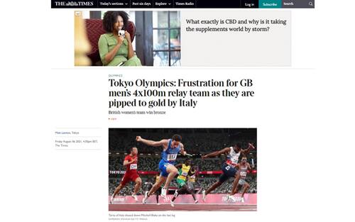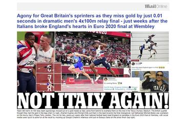 DAILY MAIL: "No, ancora l'Italia! Agonia per gli sprinter britannici che mancano l'oro di appena un centesimo in una drammatica finale dei 4x100. Il tutto poche settimane dopo che gli italiani avevano infranto i cuori dell'Inghilterra ai rigori a Euro 2020"
