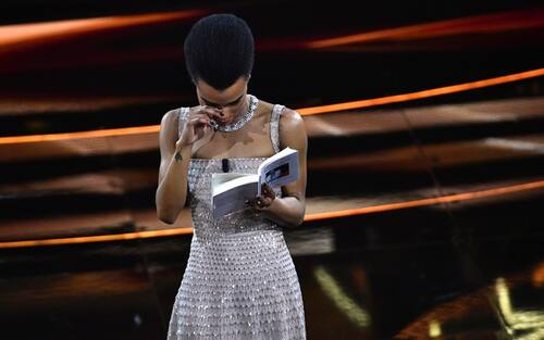 Lorena Cesarini ha portato all'Ariston un monologo che conclude tra le lacrime dopo aver letto un brano da "Il razzismo spiegato a mia figlia", libro dello scrittore marocchino Tahar Ben Jelloun.