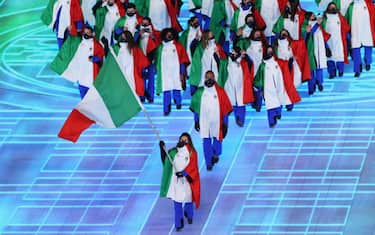 Ecco gli azzurri, con la mantella tricolore firmata Armani. Emozionata la portabandiera Michela Moioli, che ha sostituito l'infortunata Sofia Goggia. Gli azzurri hanno sfilato avendo come sottofondo le Quattro Stagioni di Vivaldi