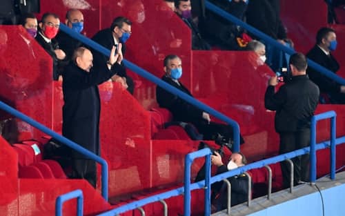 Il presidente russo Vladimir Putin allo stadio olimpico, uno dei pochi leader mondiali a essere presente alla cerimonia di apertura