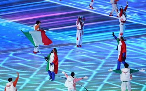 L'ingresso dell'Italia: alla cerimonia hanno sfilato 50 dei 118 atleti che compongono la delegazione azzurra