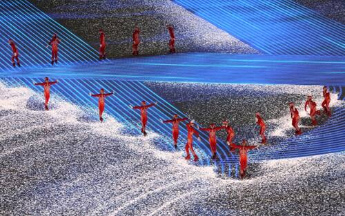 Da un cubo di ghiaccio virtuale vengono ricordate tutte le precedenti edizioni dei Giochi invernali, con la chiusura dedicata a Pechino 2022
