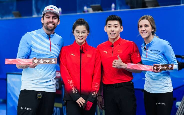 Un gesto di amicizia, nella migliore tradizione del curling, quello della squadra cinese del doppio misto verso gli Stati Uniti. Un omaggio che può assumere anche un significato distensivo. Ling Zhi e Fan Suyuan hanno donato due spille commemorative agli avversari Christopher Plys e Vicky Persinger al termine della sfida vinta dagli americani per 7-5. L'omaggio è stato molto gradito dagli statunitensi: "Sono bellissime, super uniche", ha commentato Christolpher Plys, "queste resteranno sulla mia scrivania per molto, molto tempo". "C'è qualcosa di speciale con la coppia cinese", ha aggiunto, "non riusciamo a comunicare più di tanto ma ci scambiamo sempre sorrisi e un saluto con il pugno. Non lasciamo che le politiche dei nostri Paesi si mettano tra noi, alla fine abbiamo tutti lo stesso sangue e pratichiamo lo stesso sport, è divertente sperimentare altre culture". Ling Zhy, ha sottolineato che "nel curling è tradizione per gli atleti di essere amichevoli tra loro" e ha riferito di aver invitato Plys a visitare la sua città natale di Harbin, nel nord-est della Cina.