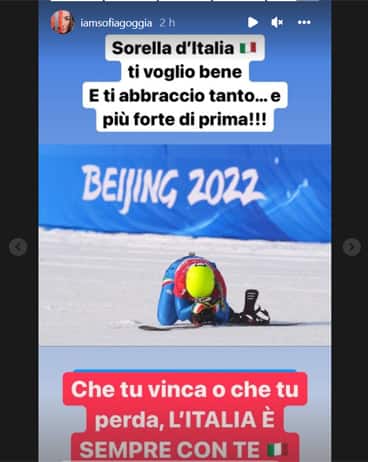 Anche Sofia Goggia si è unita al coro di consolazione per Michela Moioli con una stories su Instagram. "Sorella d'Italia, ti voglio bene. E ti abbraccio tanto... e più forte di prima. Che tu vinca o che tu perda, l'Italia è sempre con te"