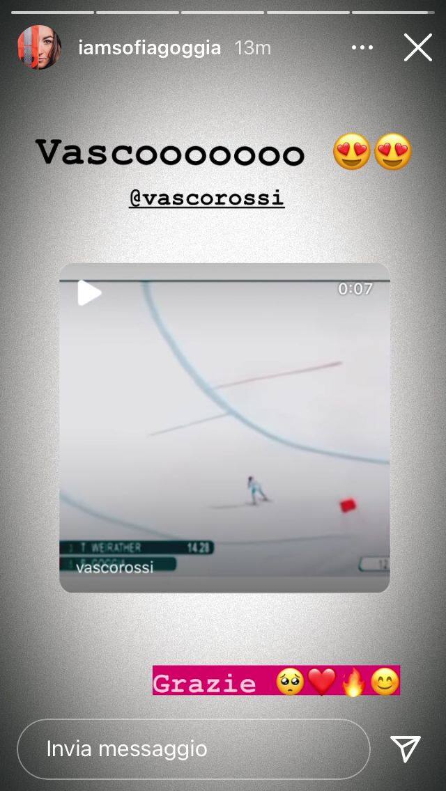Continuano le dimostrazioni di affetto verso l'azzurra, che ha dovuto rinunciare al ruolo di portabandiera nella cerimonia inaugurale a causa dell'infortunio subito a Cortina. Vasco Rossi ha infatti pubblicato una stories su Instagram, repostata dalla Goggia, in cui si vede l'atleta di Bergamo al cancelletto di partenza con in sottofondo il ritornello "La vita è un equilibrio sopra la follia...".