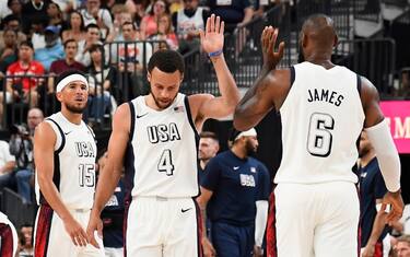 I primi 4 possessi offensivi di Team USA si chiudono con altrettante triple a bersaglio, due da parte di LeBron James e due di Anthony Edwards. E propio la giovane stella di Minnesota è il protagonista della partenza - questa volta lanciata (a differenza che contro il Canada) della nazionale di coach Kerr, che indirizza subito la gara con un primo quarto chiuso già con una doppia cifra di vantaggio (32-21). Edwards segna 11 punti in 5 minuti, sembra inarrestabile, ma la nazionale a stelle e strisce poi per gran parte della sfida si limita a gestire un vantaggio sempre ampio, che tocca anche il +24 sul 65-41 nel terzo periodo. Coach Kerr gestisce gli uomini a disposizione in due "linee quasi hockeystiche": in campo (quasi) sempre assieme il quintetto base (Curry-Edwards-Tatum-James-Embiid) e in campo (quasi) sempre assieme il gruppo delle cinque riserve (con Kevin Durant ancora assente e Derrick White a riposo). L'Australia però fa male alla difesa di Team USA nel pitturato, sia con i punti dei propri lunghi (su tutti un sontuoso Jock Landale da 20 punti e 7 rimbalzi) ma anche con quelli dei piccoli, con i backdoor di Dyson Daniels (14 punti per lui) e i floater a centro area di Josh Giddey (autore di 17 punti). Gli australiani così rimontano e allora serve un ottimo Anthony Davis (ancora in doppia doppia con 17 punti, 14 rimbalzi e 2 stoppate) e due triple decisive di Tyrese Haliburton dall'angolo per chiudere definitivamente i conti, ed evitare che la rimonta australiana si concretizzi.
