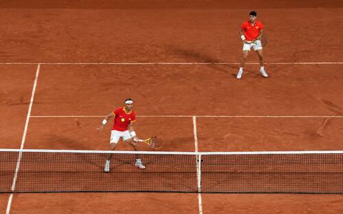 - Acclamati già al momento dell'arrivo in campo, la leggenda spagnola e il suo erede hanno giocato insieme per la prima volta. Un esordio impegnativo, ma vincente, contro la coppia argentina Gonzalez-Molteni