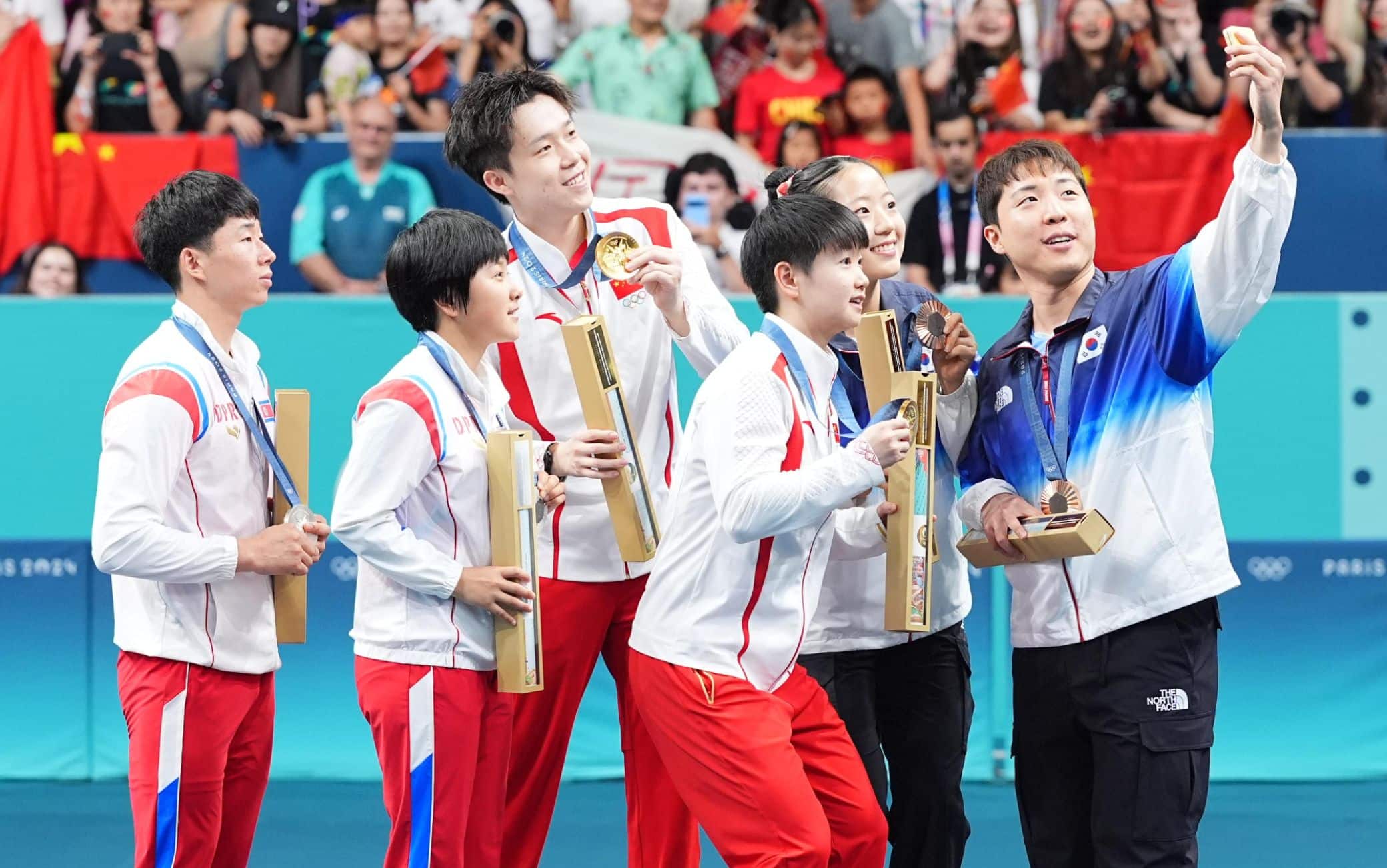 Scattarsi un selfie, appunto. E' l'immagine restituitaci dalla premiazione post finale del tennistavolo del doppio misto: oro alla Cina con Wang Chuqin e Sun Yingsha, argento alla Corea del Nord con Ri Jong Sik e Kim Kum Yong, bronzo alla Corea del Sud con Lim Jonghoon e Shin Yubin. Poi eccoli tutti insieme, sullo stesso podio, vicini e sorridenti.