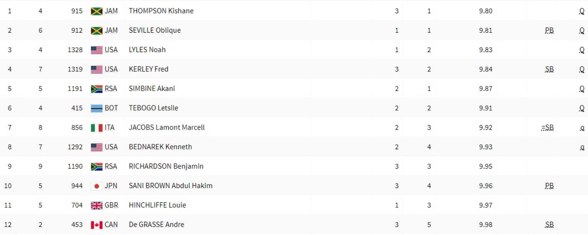 A Parigi come a Tokyo. Almeno fin qui... Marcell Jacobs entra in finale nei 100 metri da ripescato. Il campione olimpico di Tokyo 2020 ha corso la sua semifinale in 9''92, chiudendo terzo, ma risultando uno dei due più veloci fra gli esclusi (da regolamento passano di diritto i primi due delle tre semifinali). Settimo tempo complessivo per Jacobs alle spalle dei giamaicani Thompson e Seville, degli statunitensi Lyles e Kerley (battuto da Marcell nella finale di 3 anni fa), del sudafricano Simbine e del botswano Tebogo. Ecco i loro tempi in semifinale...