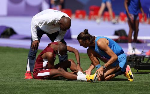 Tamberi e Sottile in finale salto in alto alle Olimpiadi: le foto del soccorso a Barshim