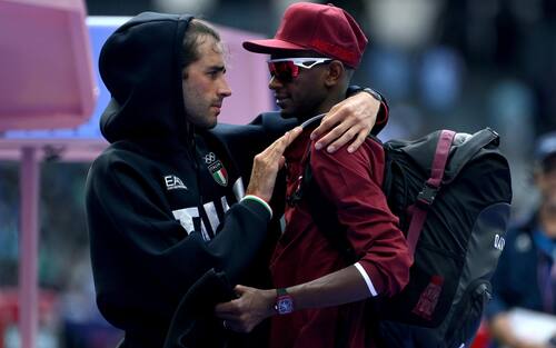 - Il saluto post qualifica tra Tamberi e Barshim, con l'augurio di ripetere il doppio oro delle ultime Olimpiadi...