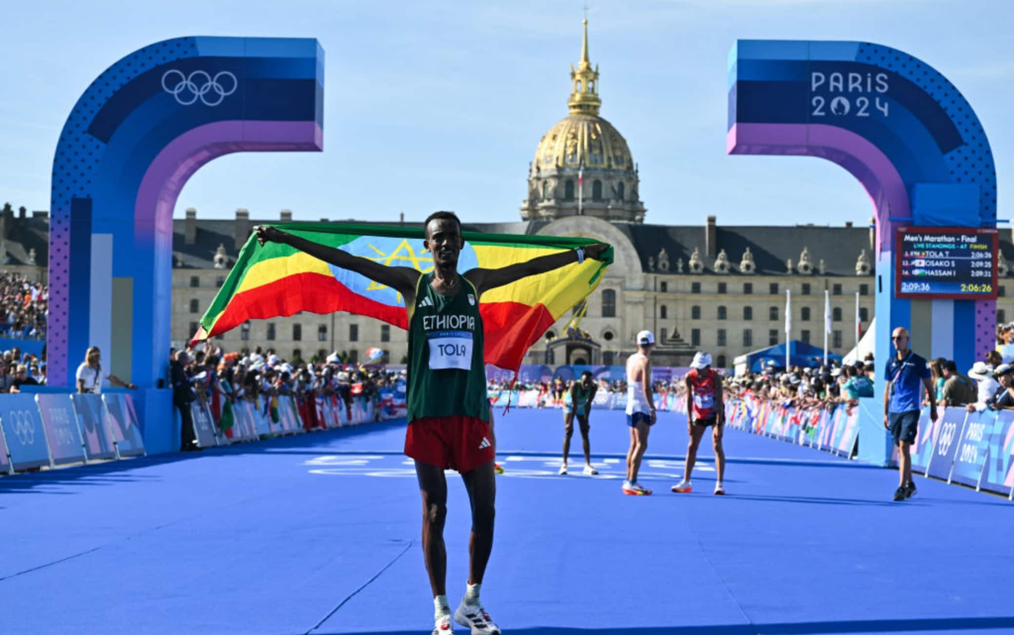 L'etiope Tamirat Tola ha vinto la maratona maschile dell'Olimpiade di Parigi correndo in 2:06.26 e stabilendo il nuovo record olimpico (non mondiale) che era ancora nelle mani di Samuel Kamau Wanjiru in 2:06:32 a Pechino 2008. Argento al belga Bashir Abdi, staccato di 21" e capace di migliorarsi dopo il terzo posto di Tokyo 2020. Il bronzo è andato al keniano Benson Kipruto a 34" dal vincitore. Il record mondiale resta quello stabilito da Kiptum nel 2023 a Chicago in 2:00.35.