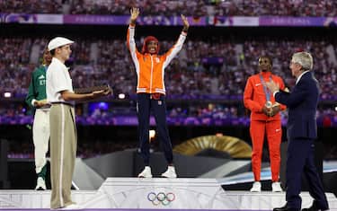 La premiazione della maratona femminile. La scelta di mettere in programma la maratona femminile come ultima prova dell'atletica e quindi come premiazione durante la cerimonia è dovuta alla volontà di omaggiare la celebre marcia delle donne del 1789