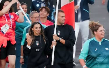 Ecco l'ingresso dei portabandiera dentro lo stadio, poi seguiranno gli altri atleti. Per l'Italia, i portabandiera sono Gregorio Paltrinieri e Rossella Fiamingo