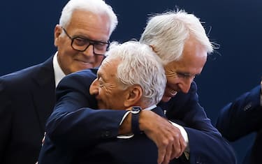 L'abbraccio col presidente uscente Malagò