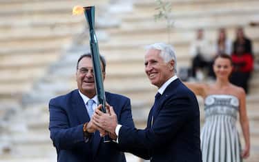 - A rappresentare l'Italia c'erano Giovanni Malagò, presidente della Fondazione Milano-Cortina 2026, Luciano Buonfiglio, presidente del Coni, Carlo Mornati, segretario generale del Coni, i sindaci di Milano e Cortina, Beppe Sala e Gianluca Lorenzi, e gli olimpionici Jasmine Paolini e Filippo Ganna che hanno "accompagnato" la Fiamma da Atene a Roma;