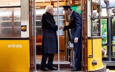 Mattarella e Valentino Rossi sul tram per la cerimonia di Milano-Cortina