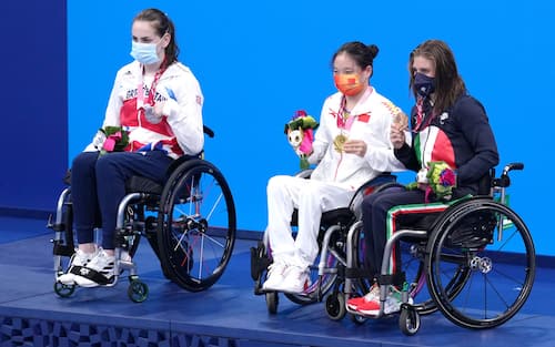 Giulia Terzi ha ottenuto la medaglia d'argento nei 400 metri stile libero femminile categoria S7. La milanese, con il tempo di 5'06"32, è stata battuta solo dalla statunitense McKenzie Coan (qui sorridente nella foto), che si è imposta in 5'05"84. Bronzo all'altra americana Julia Gaffney, in 5'11"89