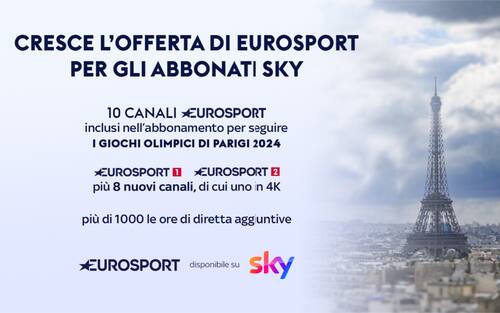 - Ai due canali Eurosport 1 ed Eurosport 2 si aggiungeranno 8 nuovi canali interamente dedicati all’evento – di cui uno in 4K – su cui poter seguire molte altre discipline sportive. In totale, saranno più di 1000 le ore di diretta aggiuntive disponibili su Sky e molti contenuti saranno anche on demand
