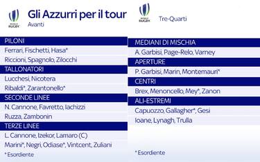 Sono 39 i giocatori chiamati che poi diventeranno 33 prima del raduno in programma dal 19 al 22 luglio. Confermato il nucleo che ha preso parte all'ultimo 6 Nazioni con alcune novità. Tra gli avanti spicca il nome del tallonatore Zarantonello, francese ma con origini italiane. Chiamati anche gli esordienti Hasa, Ribaldi, Marini e Odiase.