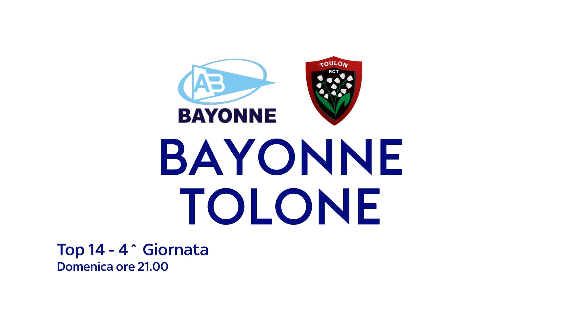Quarta giornata nel Top 14, il campionato francese di rugby. Posticipo domenicale da seguire su Sky Sport Arena alle ore 21.00. In campo Bayonne contro Tolone.