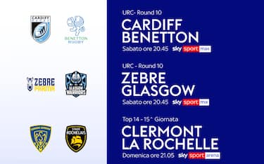 Sarà un fine settimana di grande rugby quello che sta per cominciare su Sky e in streaming su NOW. Per lo United Rugby Championship si gioca la 10^ giornata con le due franchigie italiane impegnate sabato 24 gennaio, in contemporanea alle 20.45: in diretta su Sky Sport Mix e NOW le Zebre ospitano Glasgow, mentre la Benetton Treviso è impegnato nella trasferta di Cardiff con diretta su Sky Sport Max e NOW.